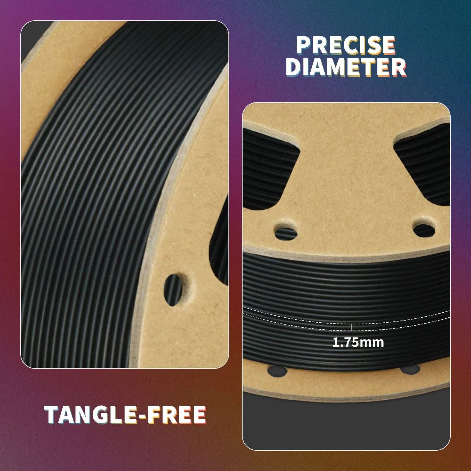 We manually inspect winding on every pla filaments and employ a larger inside-diameter spool design to minimize friction and tangles. Whether you print with FDM/FFF machines or larger format printers, our 3D printer filament feeds consistently without snarls or interruptions.